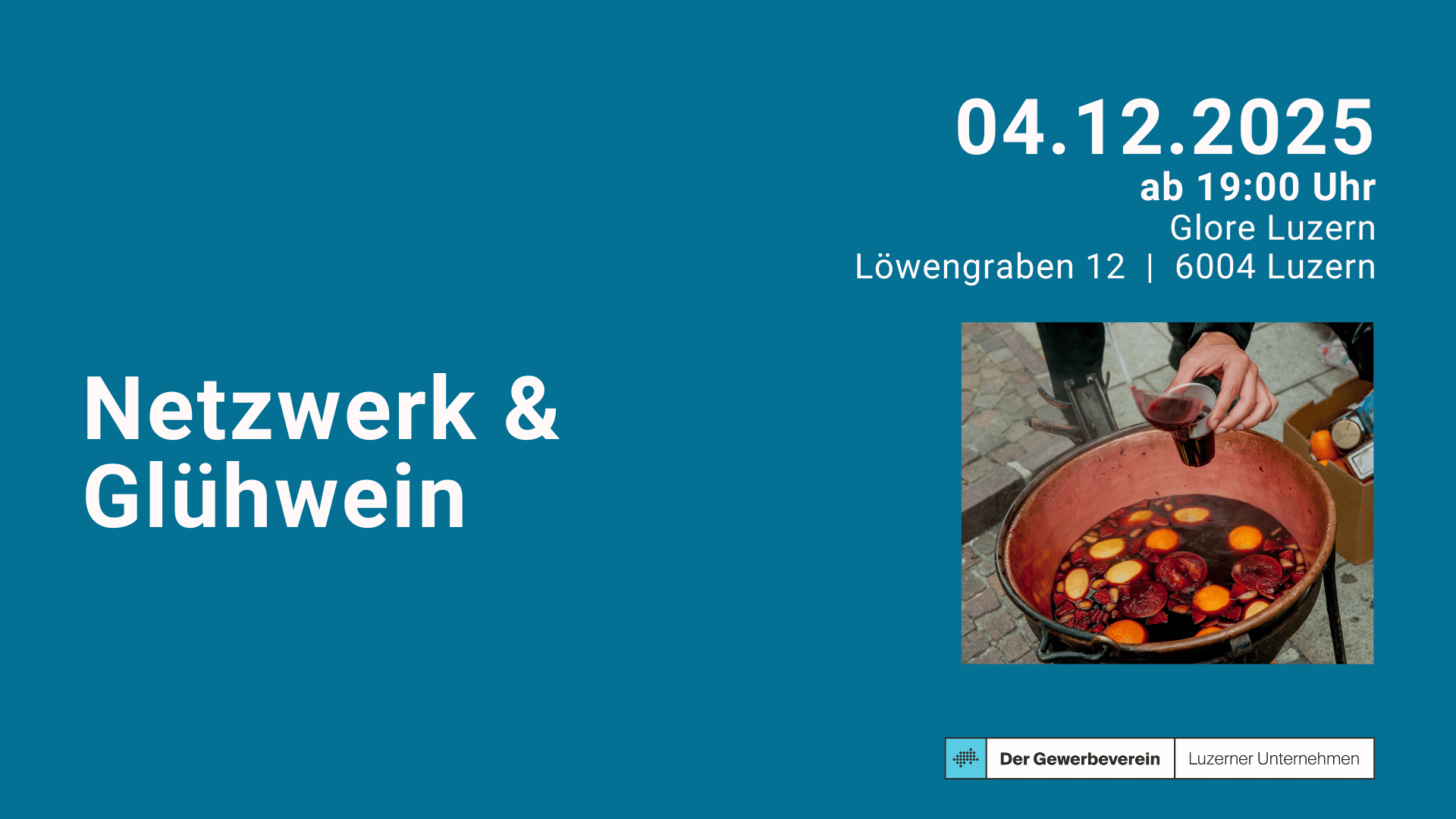 Am Donnerstag, 4. Dezember 2025, laden wir unsere Mitglieder und Gäste zu einem winterlichen Netzwerktreffen ein. Ab 19 Uhr stossen wir bei einem Glas Glühwein gemeinsam auf das Jahresende an. Der Abend bietet Gelegenheit für anregende Gespräche, neue Kontakte und einen inspirierenden Austausch in ungezwungener Atmosphäre.